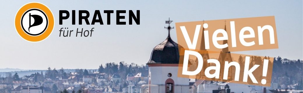 Liebe Hoferinnen und Hofer, wir, die Stadtratskandidatinnen und -Kandidaten der Piratenliste, senden Euch ein herzliches Dankeschön für die vielen Stimmen! Wir nehmen euer Vertrauen als Auftrag! Vielen Dank und bleibt gesund! Eure Piraten für Hof